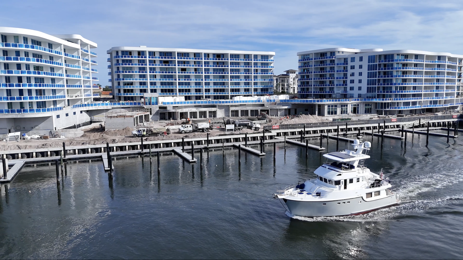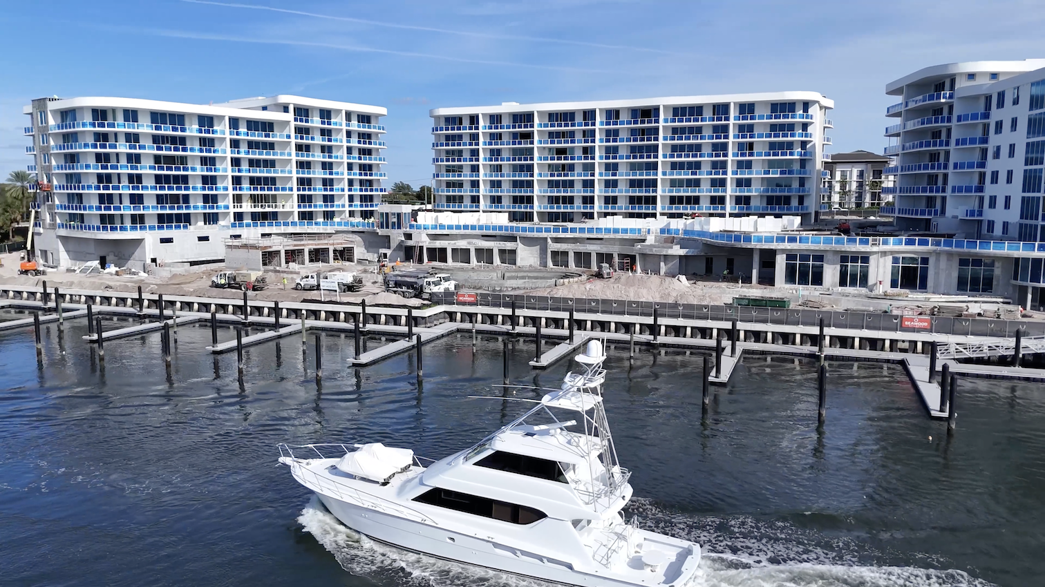 The North Building has reached full height and the East Building has ascended to the 5th Residential Floor. The South Building is progressing beyond the parking levels and approaching the 1st Residential Floor.